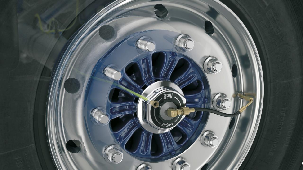 BPW er førende leverandør af bl.a. aksler til transportbranchen og har videreudviklet dæktrykskontrol på mange punkter. AirSave fra BPW sidder som et rør mellem hjulnavet og dækket. Det aflæser og regulerer dæktrykket så chaufføren altid kører med det optimale dæktryk. På trods af den begrænsede plads, der er til rådighed, kan AirSave førstegangsmonteres sikkert og nemt af opbyggeren.