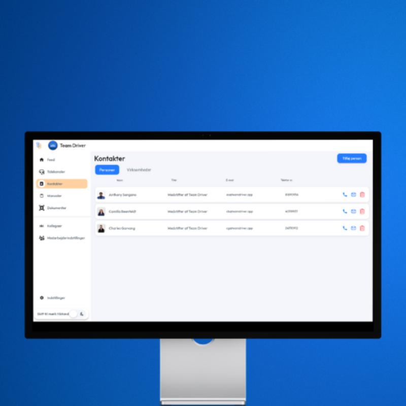 Gør som 14.5% af Danmarks lastbilchauffører og oplev fordelene ved en digitaliseret og forbundet arbejdsstyrke. Besøg https://teamdriver.app/company-offer/ for at planlægge en demo og se, hvordan Team Driver Workspace kan optimere din virksomhed.