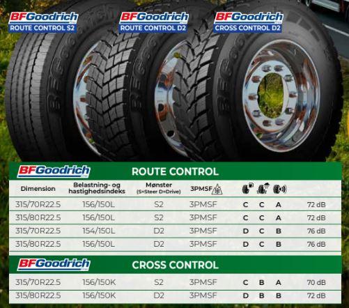 – Det er netop de mere robuste karkasser i BFGoodrich Route Control S2/D2 og BFGoodrich Cross Control S2/D2, der øger transportkundernes muligheder for at regummirering af dækkene, når de er slidt ned. Det kan i sig selv give en økonomisk besparelse i en tid, hvor budgettet er under pres, fastslår han.