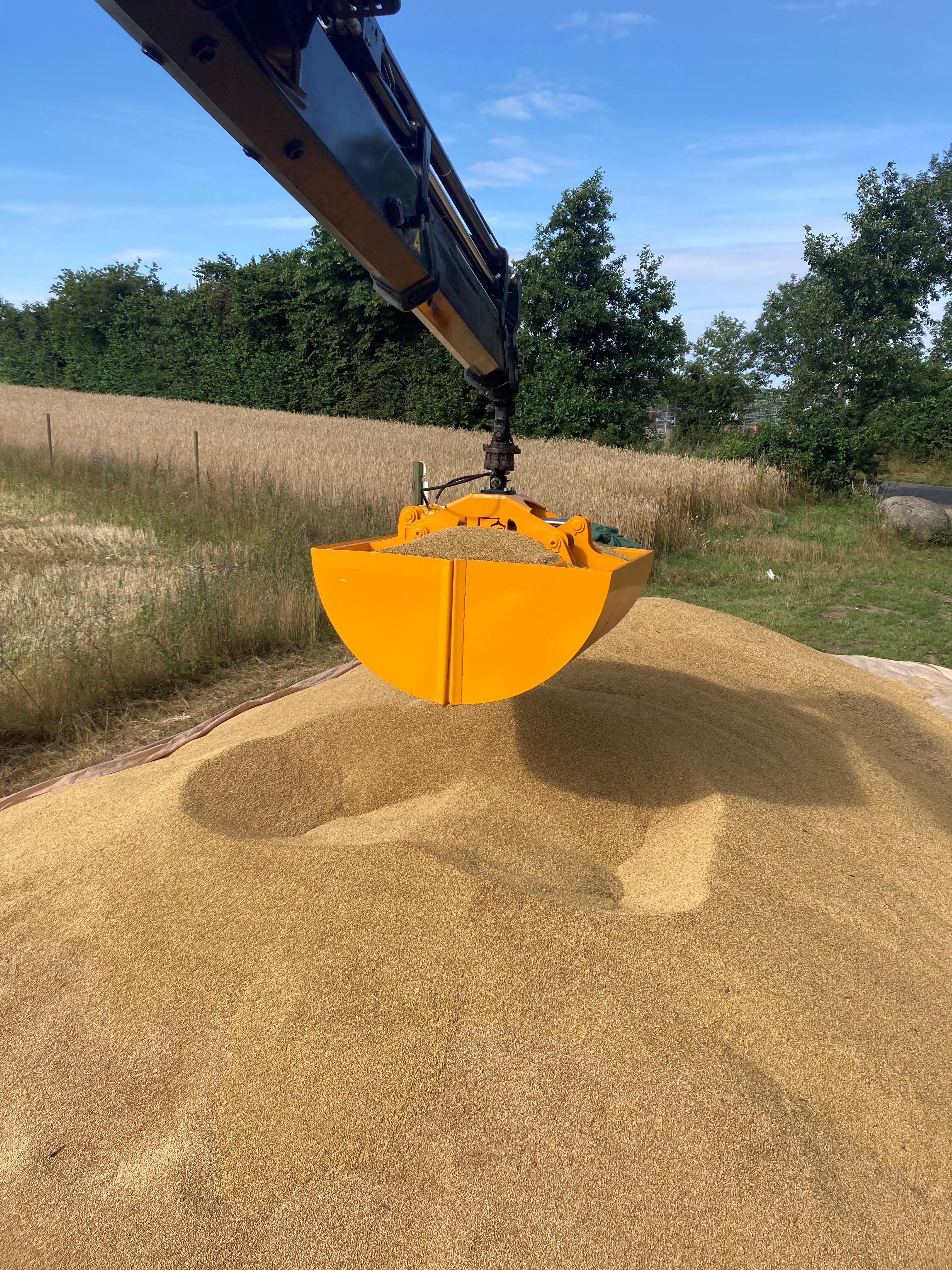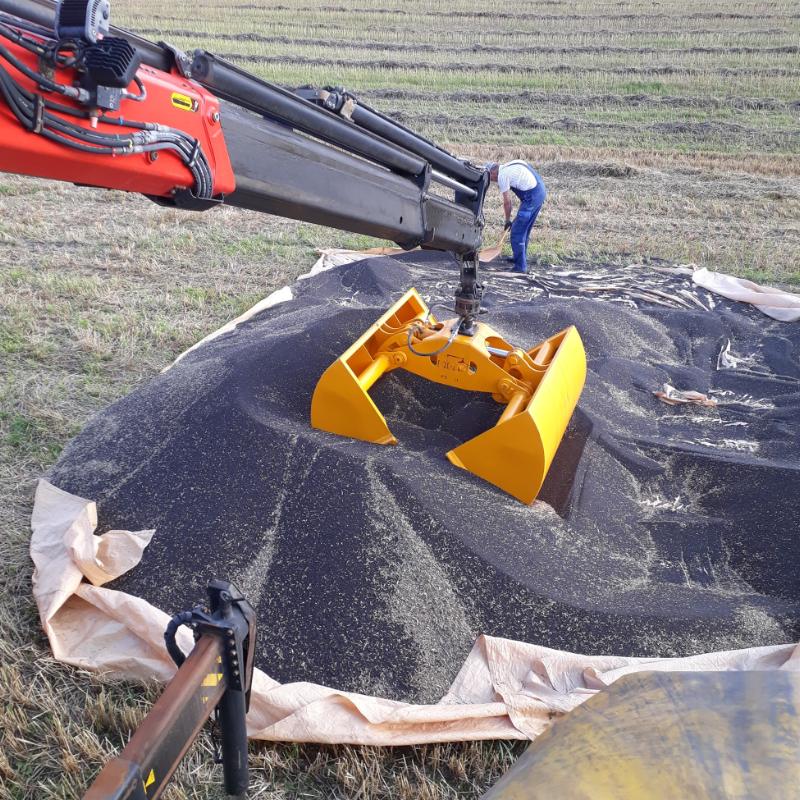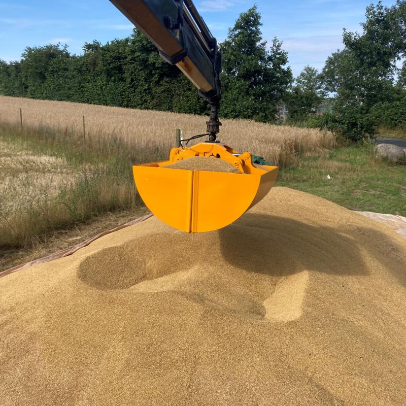 Grabben er forsynet med særlige skær, så den holder tæt ved håndtering af korn og raps og samtidigt ikke ødelægger presennings-underlag.