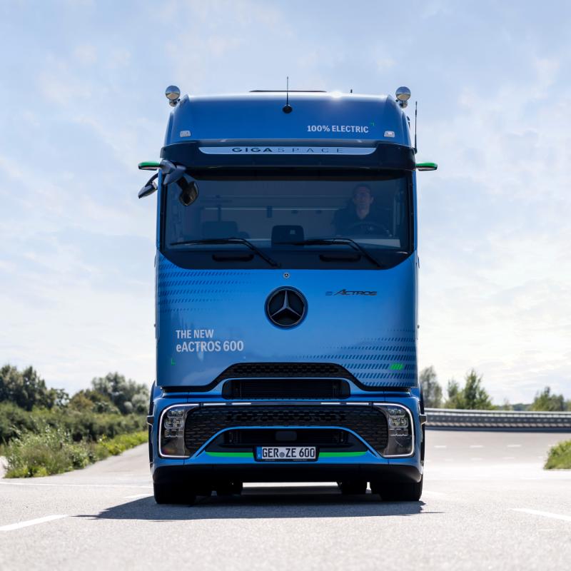 arrow_backTil oversigtenLangturskørsel uden bekymringer om opladning: eActros 600 har en aktionsradius på 500 km uden genopladning, og den oplader fra 20 % til 80 % på ca. 30 minutter takket være megawatt-opladning. Dens drivsystem sørger for ekstra power. Og litium-jernfosfat-batterierne (LFP) er nikkel- og koboltfri og tilbyder kæmpemæssige fordele angående levetid og strømflow. eActros 600 har nu vundet "International Truck of The Year 2025".