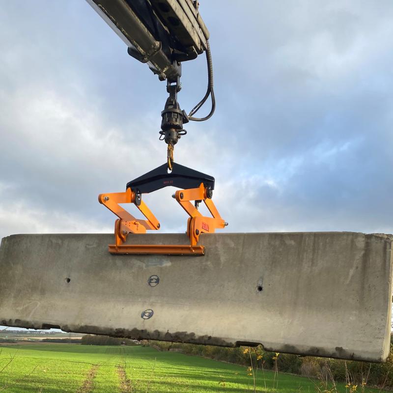 Klemmeaggregatet kan leveres til håndtering med krog eller direkte i rotator-aksel.