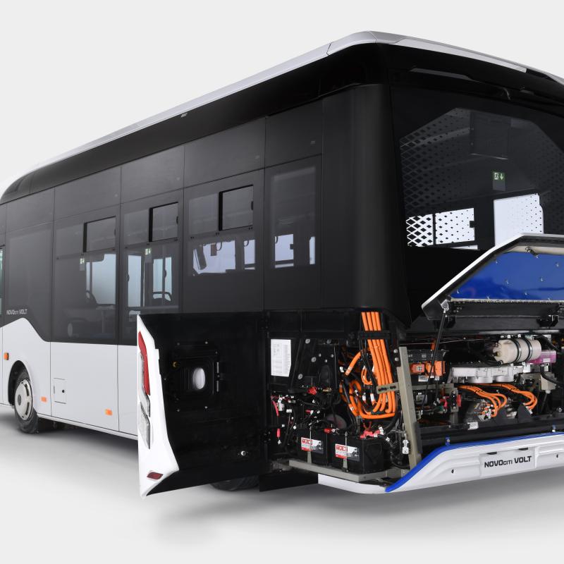 På vores stand kan du se en NovoCiti Volt 8 meter fuld elektrisk bus til offentlig transport. Den kan tage op til 43 passagerer, herunder 1 kørestol. Bussen kan fås med batteripakker på 211 og 268 kWh. En yderst manøvredygtig bus.
