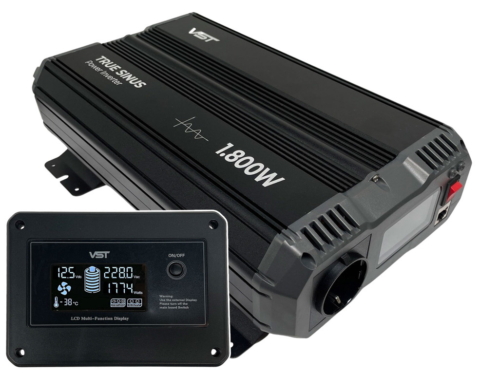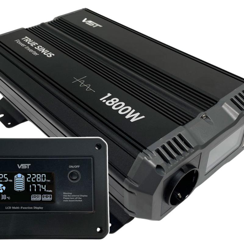 VST True-Sinus 1.800W Power Inverter 12V med fjernbetjening og display
